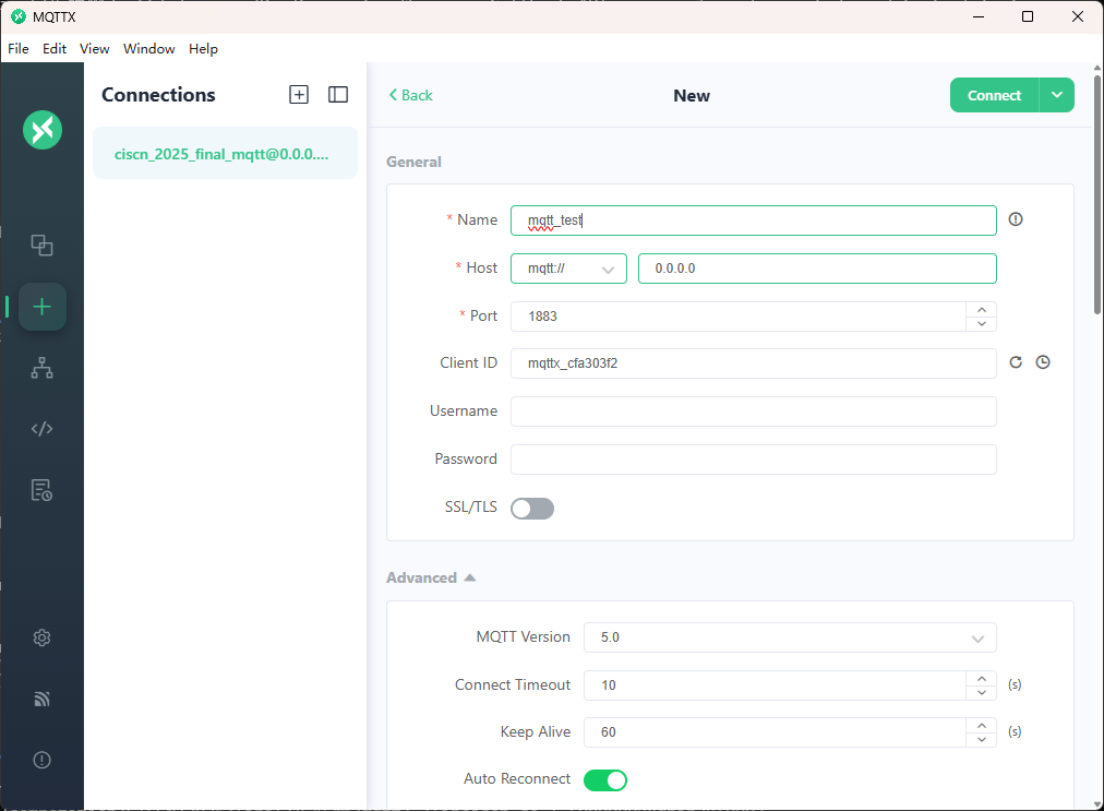 点击新建连接,这里由于是wsl启动的,但是监听了所有ip的端口,所以ip直接填0.0.0.0