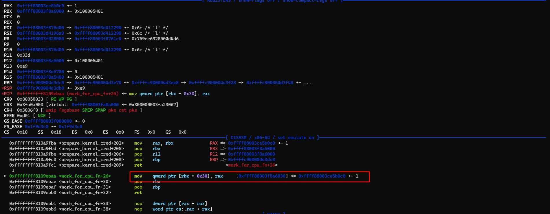 fake_tty_struct_data[4] = kernel_offset + prepare_kernel_cred;